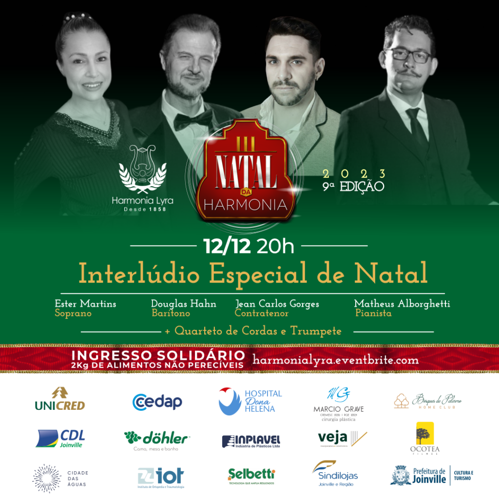 12/12 INTERLÚDIO- Clássicos de Natal – com os cantores líricos: Douglas Hahn, Ester Martins, Jean Carlos Gorges. Acompanhados pelo pianista Matheus Alborguetti e o trio de cordas